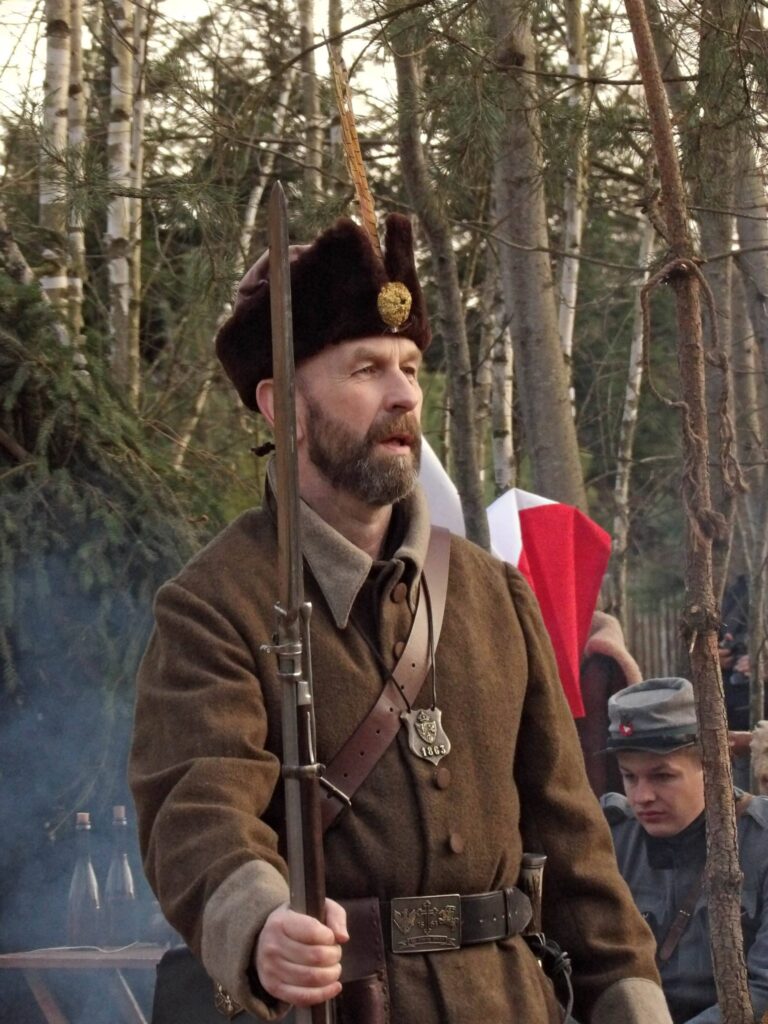 21 marca wzięliśmy udział w organizowanym przez Biłgorajską Grupę Rekonstrukcji Historycznej Powstanie Styczniowe 1863 rajdzie pieszym pod nazwą “Na styku granic”. To już piąta edycja tego wydarzenia. Trasa prowadziła malowniczymi terenami miedzy Naklikiem a Łazorami i mierzyła blisko 20 km. a rozpoczęła się koncelebrowaną mszą świętą. Podczas krótkich przerw duchowni z ks. Rudolfem Karasiem na czele przytaczali różne ważne dla patriotyzmu wypowiedzi i rozważania, które z kolei my uzupełnialiśmy historiami z okresu Powstania Styczniowego. W rajdzie wzięło udział około 150 osób.