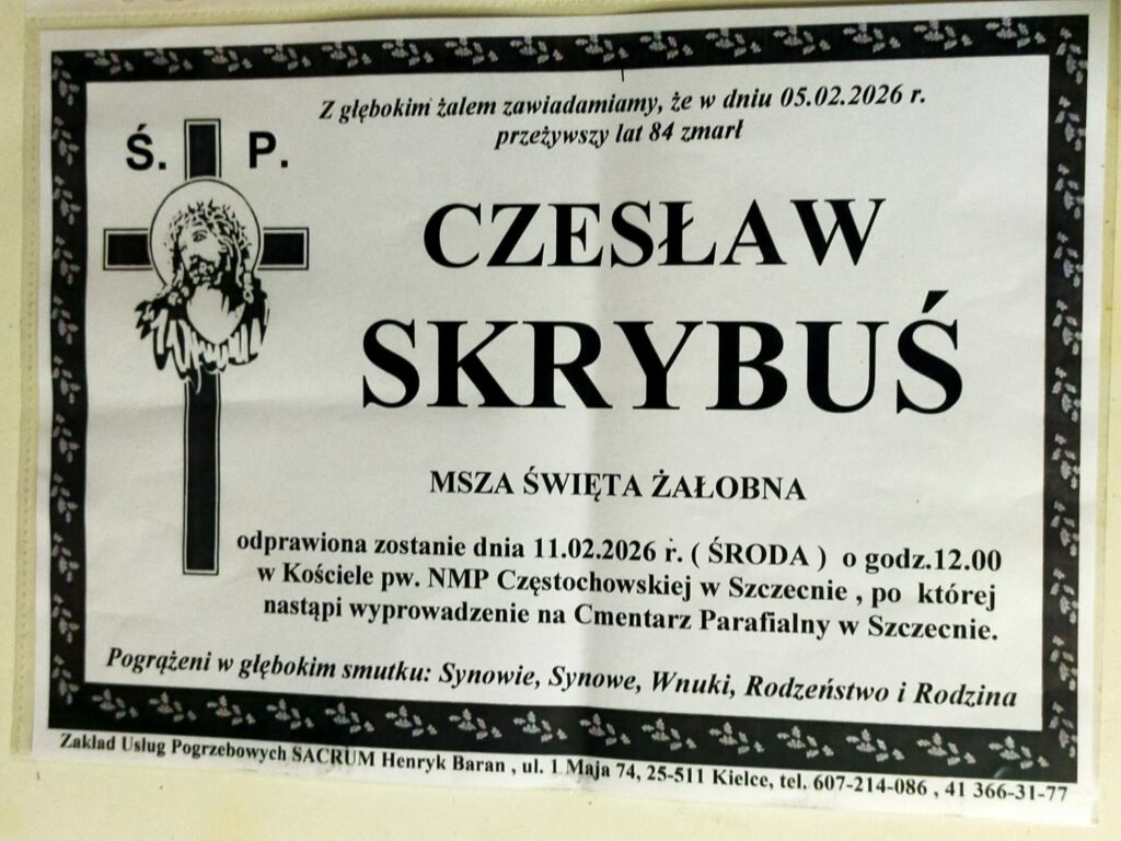 W dniu 11 lutego 2026 r. odprowadziliśmy na miejsce wiecznego spoczynku śp. Czesława Skrybusia.